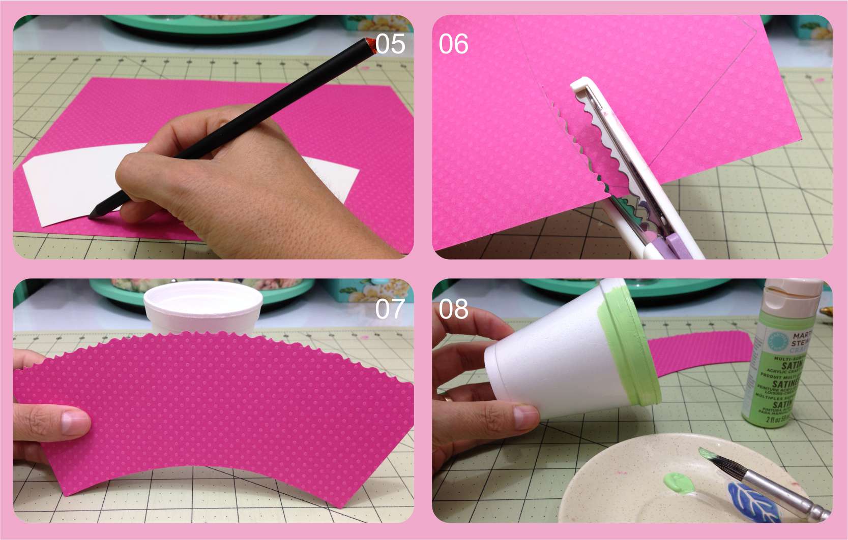- 06 – Para dar um toque especial eu cortei a borda superior com uma tesoura decorativa.