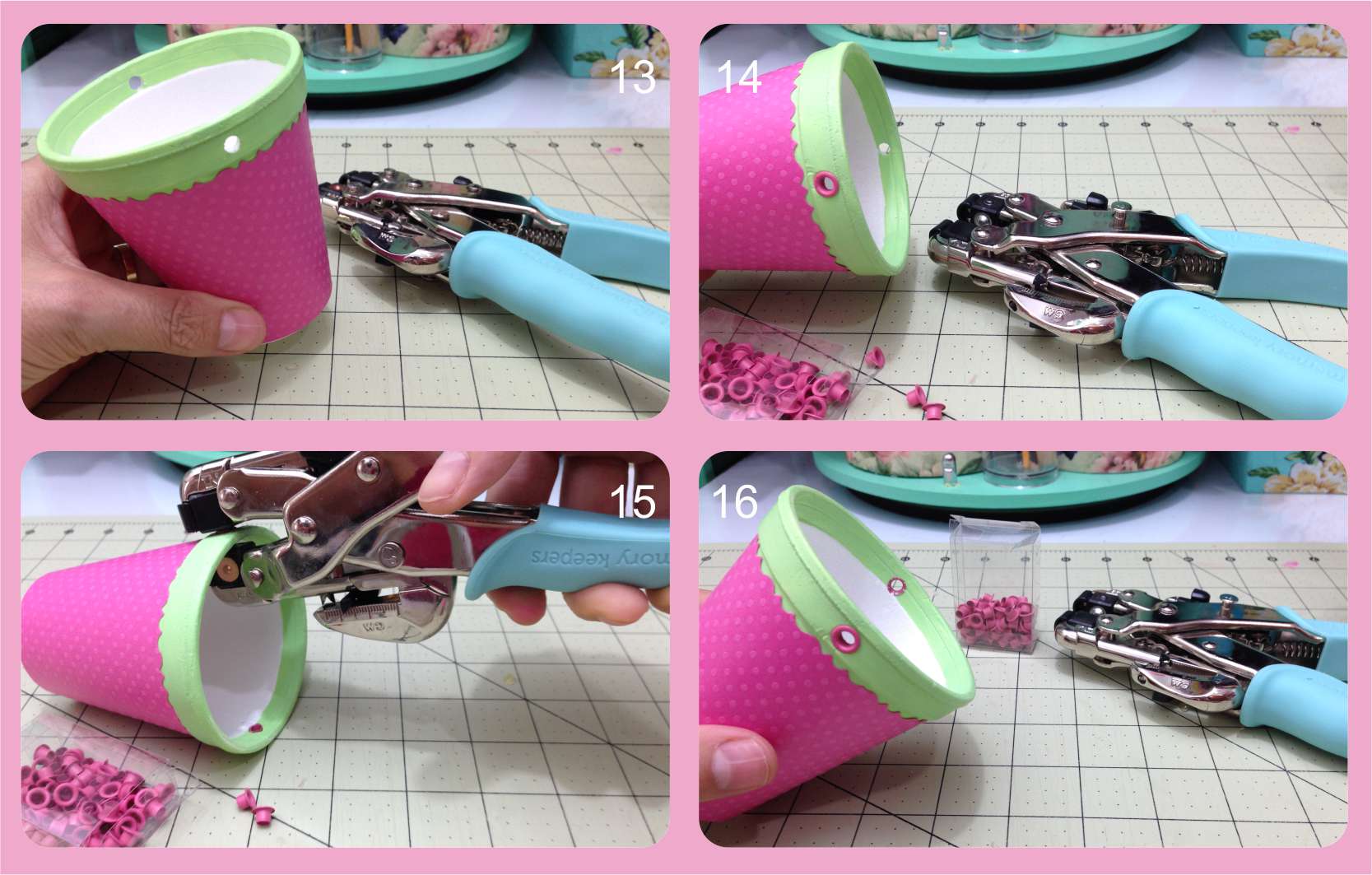 - 12 – Faça dois furinhos. (Eu uzei a minha crop-a-dile para furar, é uma ferramenta sensacional).