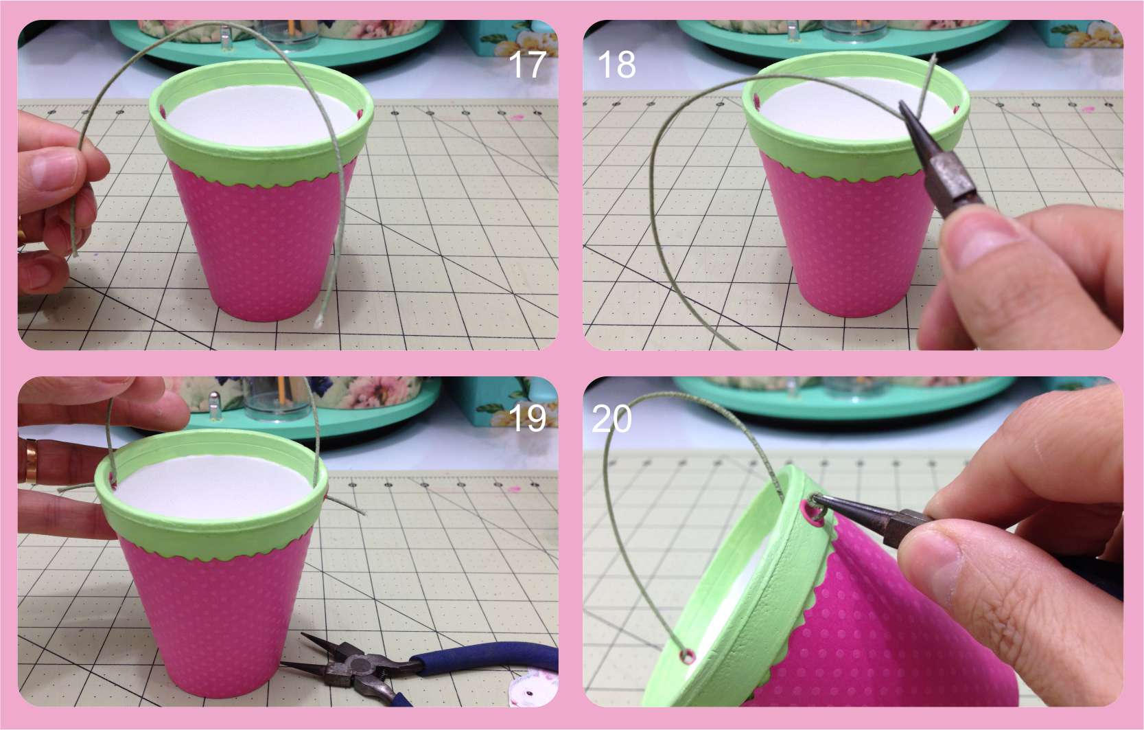- 17 – Vamos colocar uma alça de arame, corte na medida que desejar.