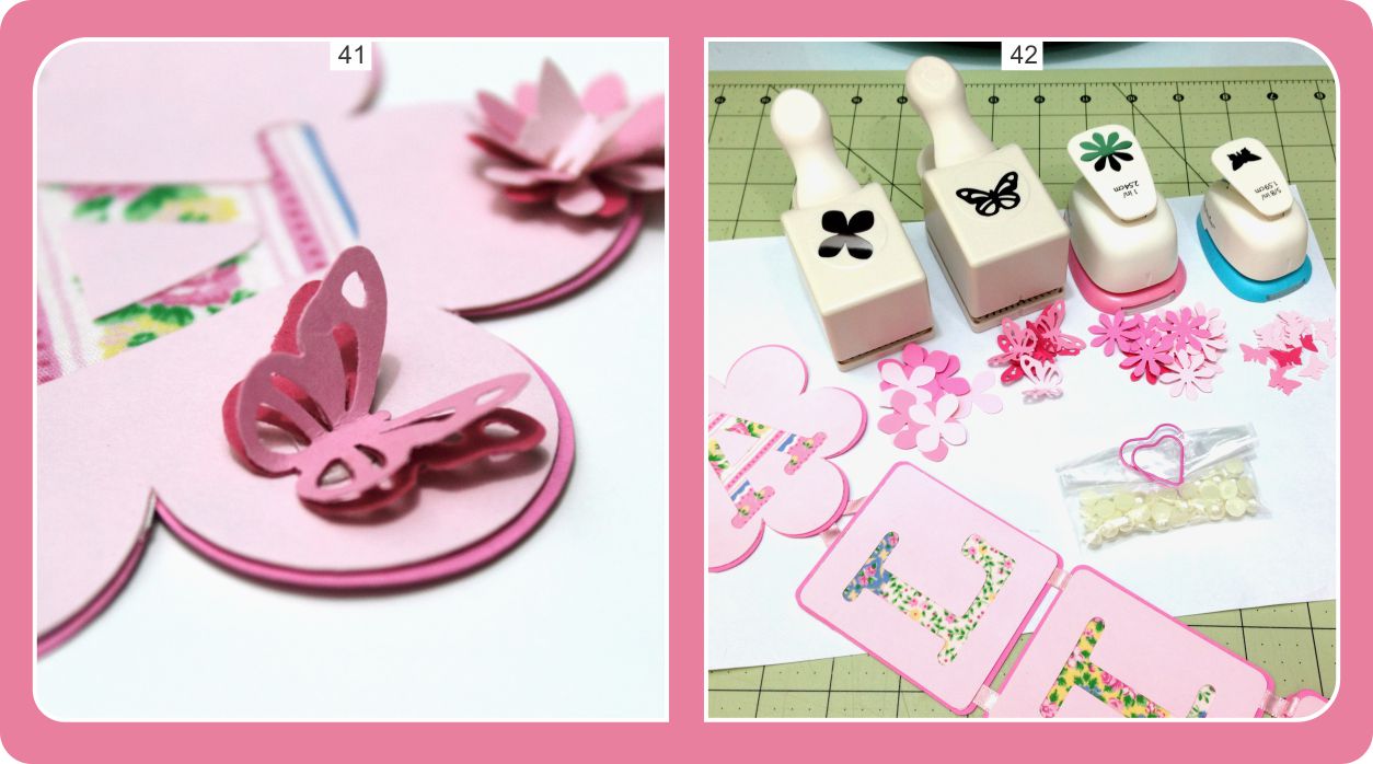 - 41 e 42 – Em breve um novo post de um outro enfeite que fiz ao mesmo tempo que o da Julia e decorei usando os furadores de Scrapbook.