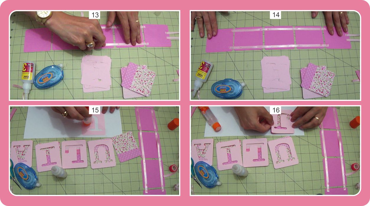 - 13 – Eu inicie este projeto com cola instantânea para não ter volume, mas acabei partindo para fita permanente e foi muito melhor para trabalhar.