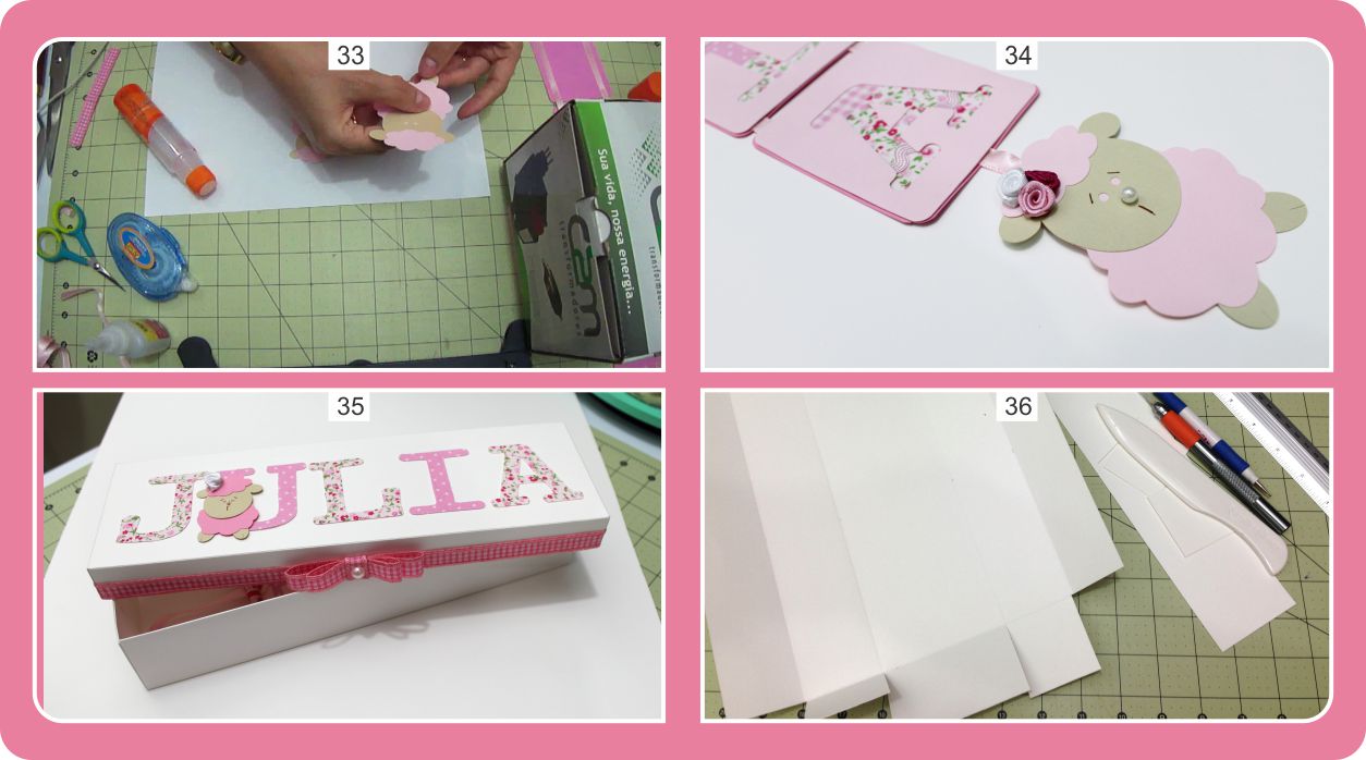 - 35 – Para finalizar o projeto executei essa linda caixa de papel cartão decorada com as letras que sobraram das plaquinhas, lembra?