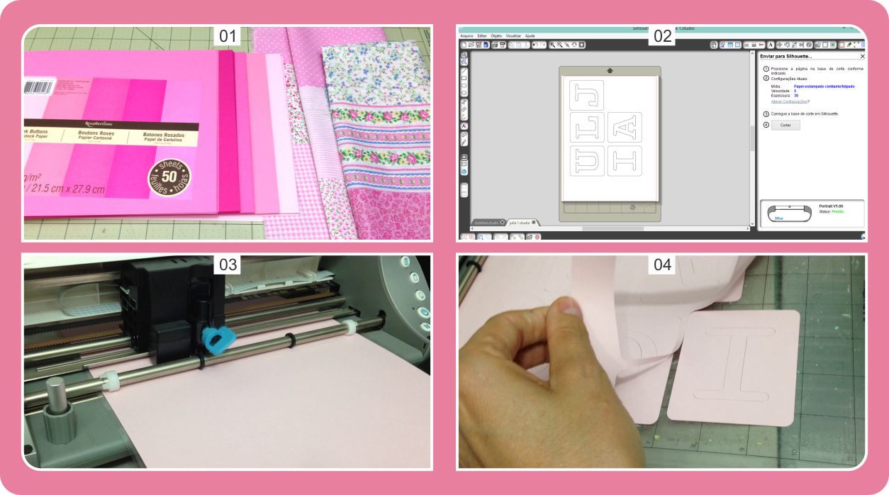 - 2- Como tenho a plotter Silhouette eu executei com ela, mas nada que uma régua, estilete e capricho lhe impossibilite de fazer algo bem parecido não é mesmo, só opte por letras com cantos retos.