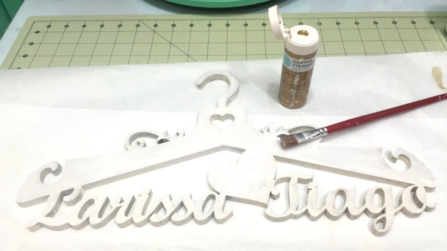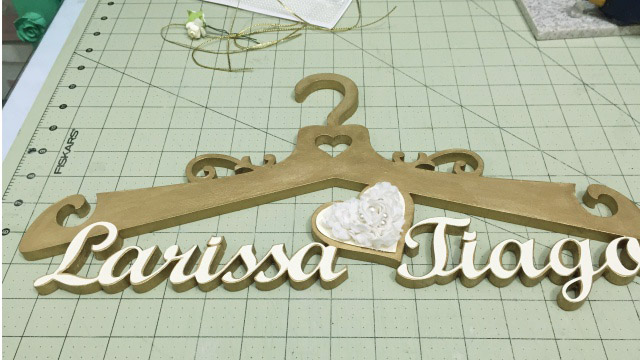 Para presenteá-la preparei com muito amor este exclusivo projeto, um cabide em mdf com seus nomes.