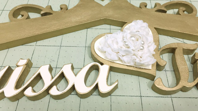 Sobre a área do coração coloquei pérolas e renda.